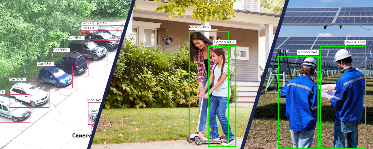 Our devices work with existing ONVIF/RTSP IP cameras, reduces false alarms, and provides real-time object detection for people, vehicles, and animals.